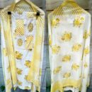 Pure Linen Unstitched Suit with Nodi Thread Work & Yellow Floral Print