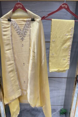 Experience the charm of timeless elegance with this Tissue Fabric Brocade Designer Suit, exquisitely crafted for your special occasions.